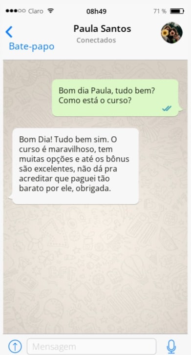 Vou te oferecer 7 dias de garantia incondicional, se dentro desse prazo você perceber que o produto não é para você, pode pedir o dinheiro de volta e eu te devolvo 100% do seu investimento! Eu só posso te oferecer isso, porque eu confio no meu método e sei que foi utilizado por mais de 8.000 pessoas, sempre trazendo resultados. Você não tem risco nenhum, o risco é inteiramente meu!